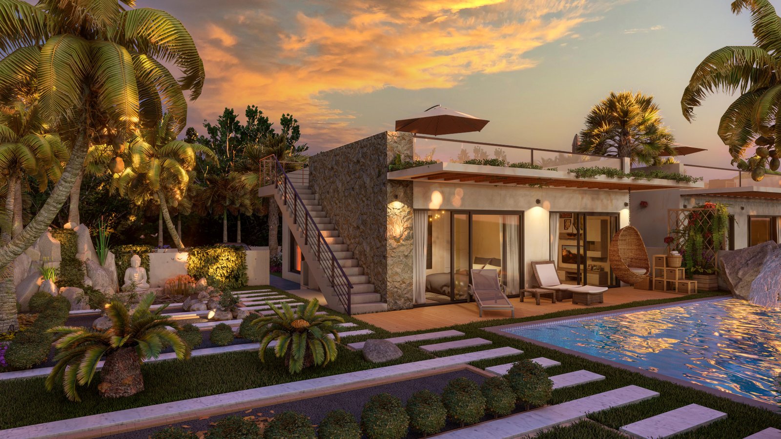 Özel yüzme havuzu ve peyzajlı bahçe